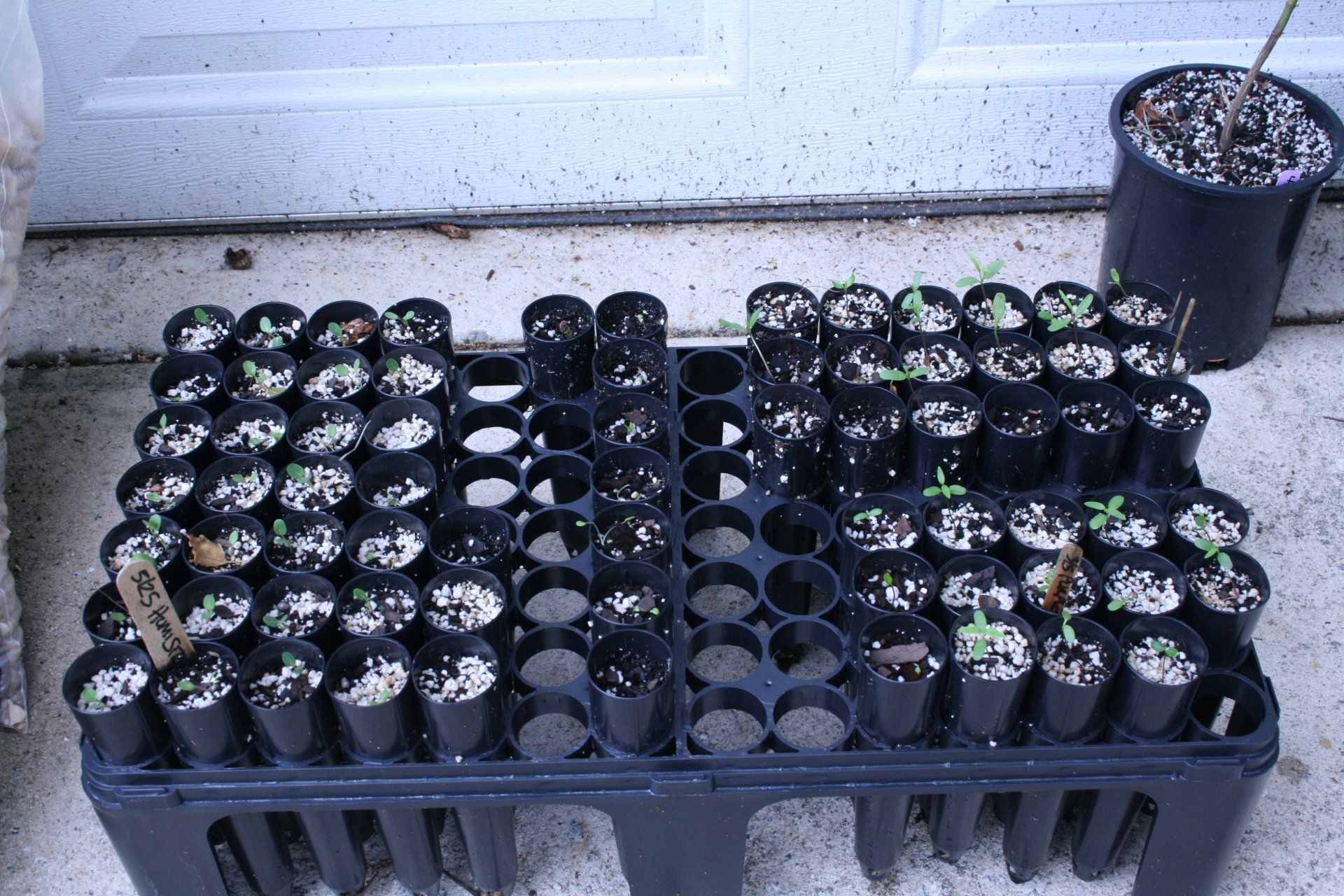 SOIL MIX: Once sprouted, I placed (carefully!) into deep (8in) cone-tainers. I tried to channel "central Florida soil type" and knowing these are also referred to as Sandhill and Pinewoods milkweed, adjusted my mix accordingly. I used an equal mix of potting mix, sand, perlite and degraded pine mulch (locally available at my local hardware store and known as soil conditioner).